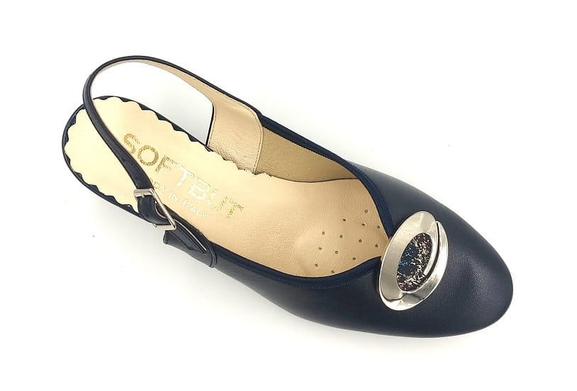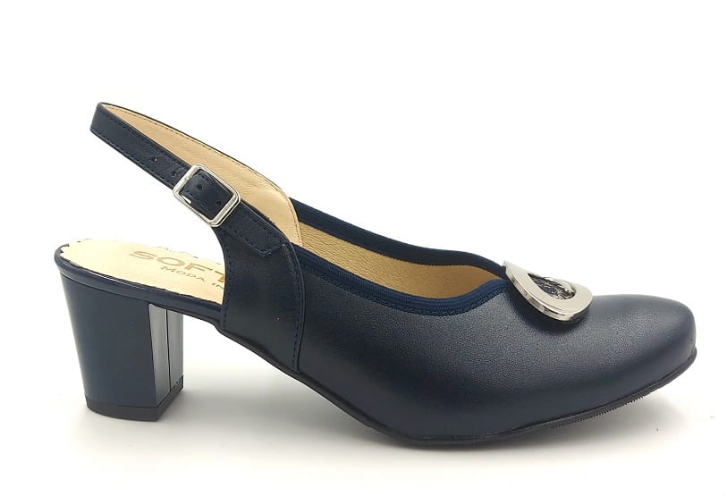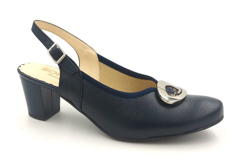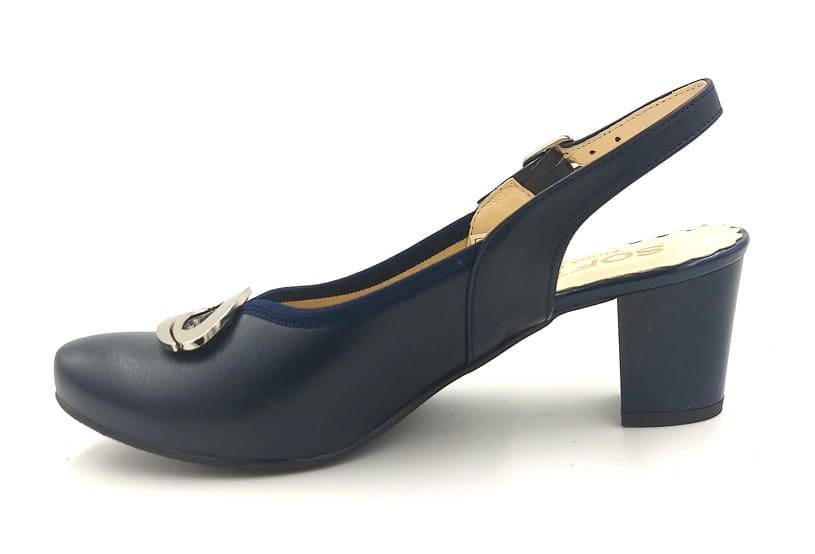 Piękne z odkrytą piętą czółenka na słupku 5 cm 1445 Granatowe
